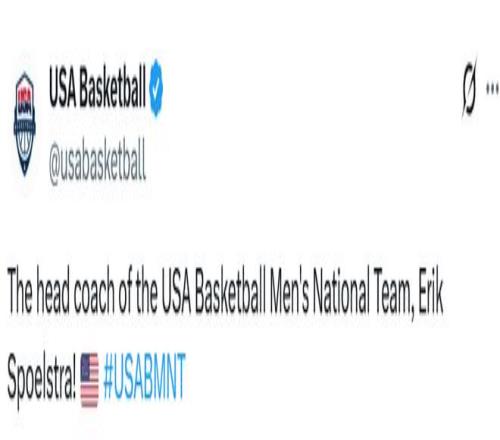 “被任命为美国男篮国家队主教练,对我而言是莫大的荣誉,”斯波尔斯特拉表示,“代表国家、带领世界级运动员征战顶级赛事,是体育领域最珍贵的机会之一。我期待延续美国篮球所秉持的卓越传统与团队精神。”