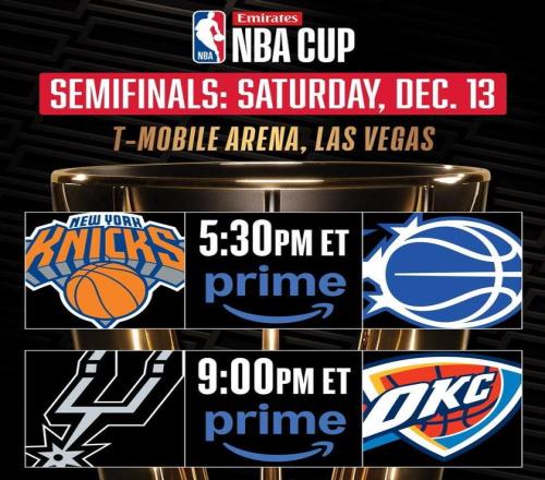 NBA杯半决赛对阵:尼克斯战魔术,雷霆将战马刺